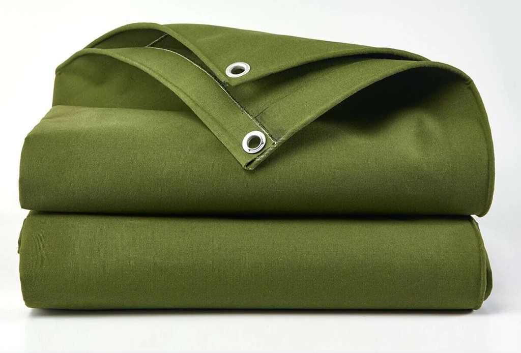 They are large sheets of strong, flexible, water-resistant or waterproof material, often cloth such as tarpaulins, vinyl or polyester coated with polyurethane, or made of plastics such as polyethylene.